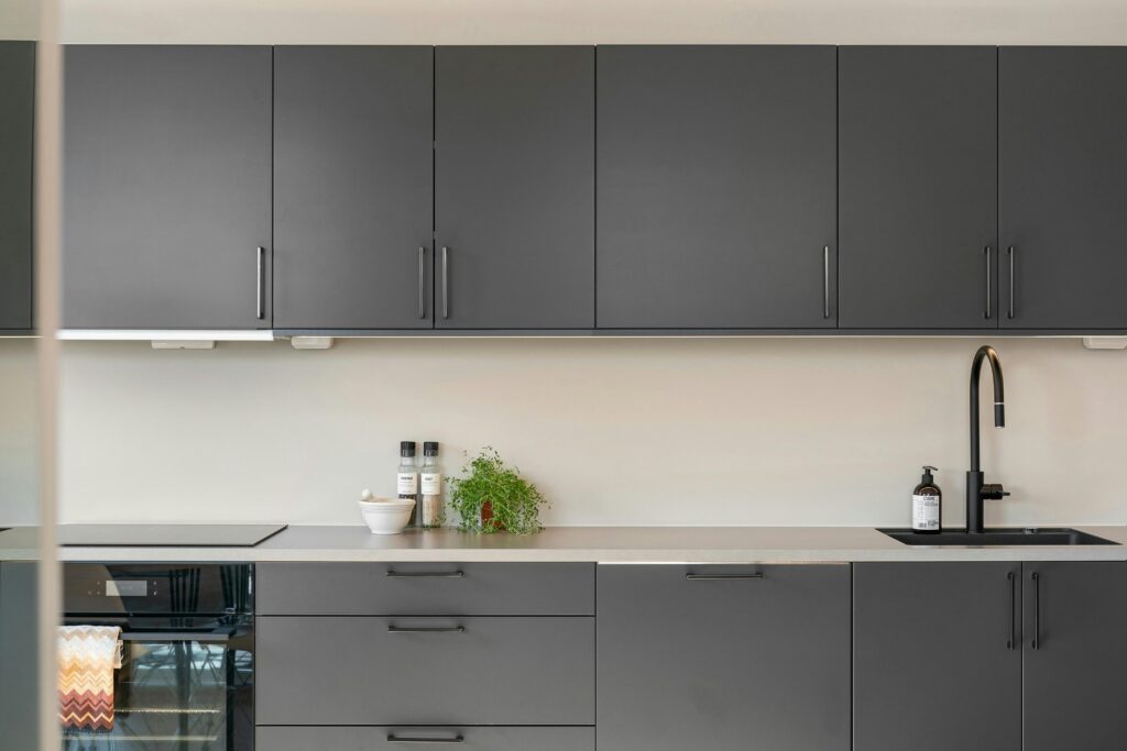 Updating old cabinet pulls with matte black, brushed brass, or satin nickel can make cabinets look more current and intentional.
